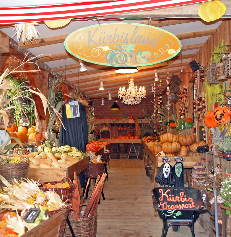 Ein Hauch von Halloween liegt in der Luft: Auf Karls Erlebnis-Hof in Warnsdorf spuken freundliche Geister herum, mit schaurigen Gruselumhängen am Hals. Und wenn man näher tritt, wird’s richtig unheimlich. Direkt am Eingang wartet ein finsterer Foto-Point auf das nächste Foto des Grauens, und draußen vor der Tür sind große, dicke Kürbisse bereit, von kleinen Künstlern zu gruseligen Gesichtern geschnitzt zu werden. Gründlich ausgehöhlt und mit frechem Fratzen-Grinsen, werden die Kürbisse am Abend des Gruselns mit Kerzen beleuchtet. Am Tage geben sich die bunten Früchte auch gern mal freundlich und lecker. Zum Beispiel in Karls Gutsküche. Dort gibt es neben Gruselmuffins und Keksgespenstern jetzt auch die köstliche hausgemachte Kürbissuppe, von der so viele Karls-Gäste schwärmen. Kostenlose Rezepte zum Nachkochen gibt es auch - und natürlich jede Art von Kürbissen, zum Kochen, Schnitzen oder Schmücken. Vom Zierkürbis bis zum Mikrowellenkürbis reicht die große Auswahl der beliebten Herbstboten, die sich mit kreativen Ideen und ein paar Accessoires in wunderschöne Dekorationen verwandeln lassen.